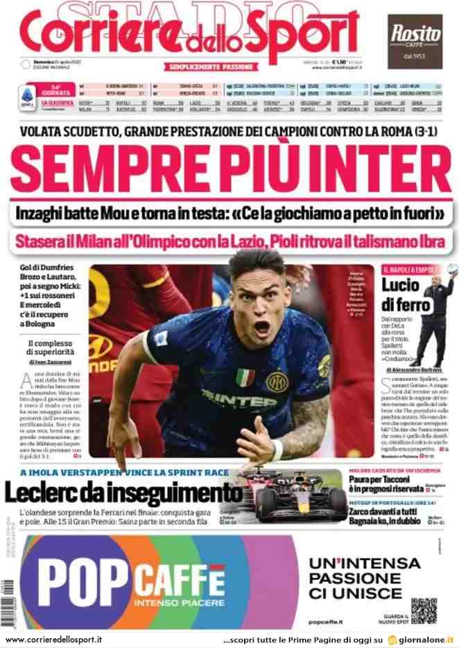 La rassegna stampa di Calciomercato.it vi propone i titoli principali sulla prima pagina di oggi, domenica 24 aprile 2022, del ‘Corriere dello Sport’: