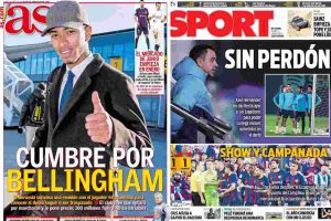 All’estero il calciomercato tra gli argomenti principali. Su ‘AS’ il titolo principale recita “Cumbre por Bellingham”, ovvero ‘vertice per Bellingham’. Il Borussia Dortmund in settimana incontrerà l’entourage dell’inglese per capire le sue intenzioni. I tedeschi pensano che chiederà la cessione, per cui la società ha già fissato il prezzo: 100 milioni di parte fissa a 40 di bonus. “Sin perdon”, invece il titolo di ‘Sport’ dopo il pareggio a sorpresa del Barcellona nel derby casalingo con l’Espanyol che conquista 1 punto al Camp Nou dopo 13 anni. E Xavi che cancella il giorno libero ai suoi giocatori.