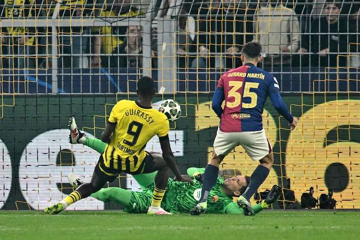 Borussia Dortmund-Barcellona 3-1: 11’, 49’ e 76’ Guirassy (BD), 54’ autogol Bensebaini (B)