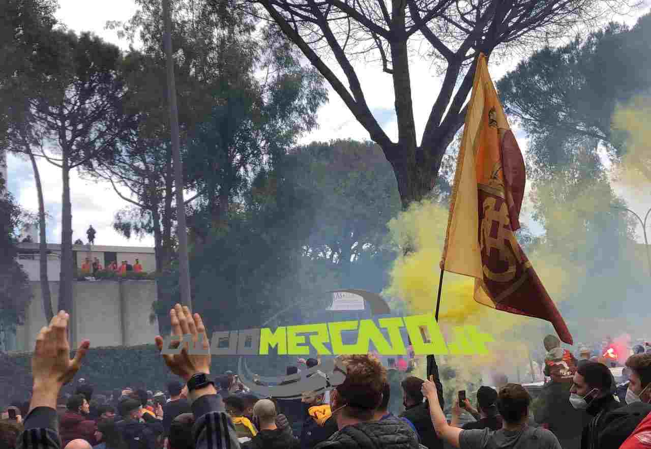 Febbre da Manchester. Vigilia di fuoco a Trigoria, dove un migliaio di tifosi si sono ritrovati al centro sportivo della Roma per caricare la squadra in vista della partenza per l’Inghilterra, dove domani la squadra di Fonseca sfiderà lo United di Solskjaer nell’andata della semifinale di Europa League. Al ‘Fulvio Bernardini’ delirio di sostenitori romanisti tra cori, fumogeni e striscioni in attesa dell’uscita del pullman con a bordo la squadra. Una scena già vista il giorno del derby, stavolta i tifosi sperano in più fortuna. L’entusiasmo è tanto, contagia persone di tutte le età: un’iniziativa organizzata da tutti i gruppi della Curva Sud in maniera “compatta” per quella si preannuncia una grande impresa.