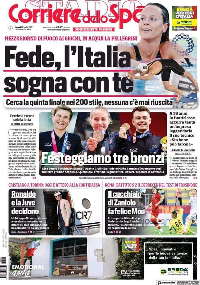 La rassegna stampa di Calciomercato.it vi propone i titoli principali sulla prima pagina di oggi, lunedì 26 luglio 2021, del ‘Corriere dello Sport’: