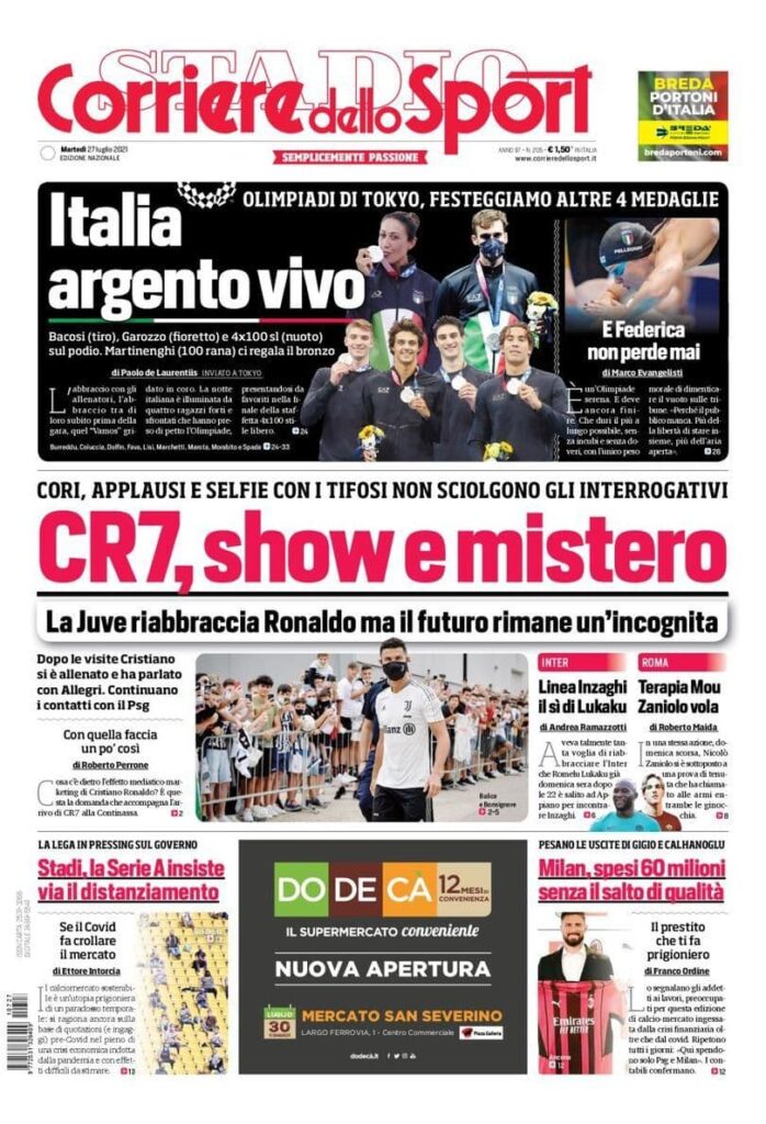 La rassegna stampa di Calciomercato.it vi propone i titoli principali sulla prima pagina di oggi, martedì 27 luglio 2021, del ‘Corriere dello Sport’: