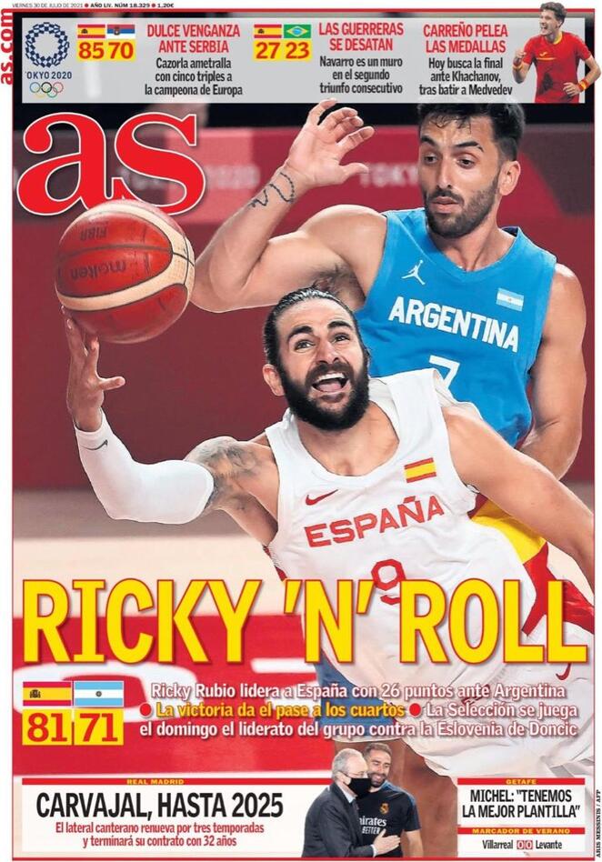 I titoli principali sulla prima pagina del quotidiano sportivo, As