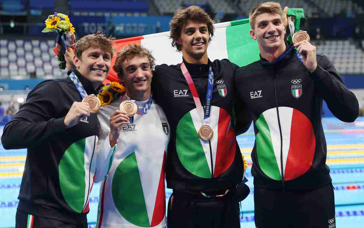 Un traguardo storico quello raggiunto dai quattro nuotatori italiani, perché l’Italia non era mai andata a medaglia nella 4×100 mista alle Olimpiadi. Ceccon, Martinenghi, Burdisso e Miressi si sono piazzati terzi dietro a Stati Uniti e Gran Bretagna.