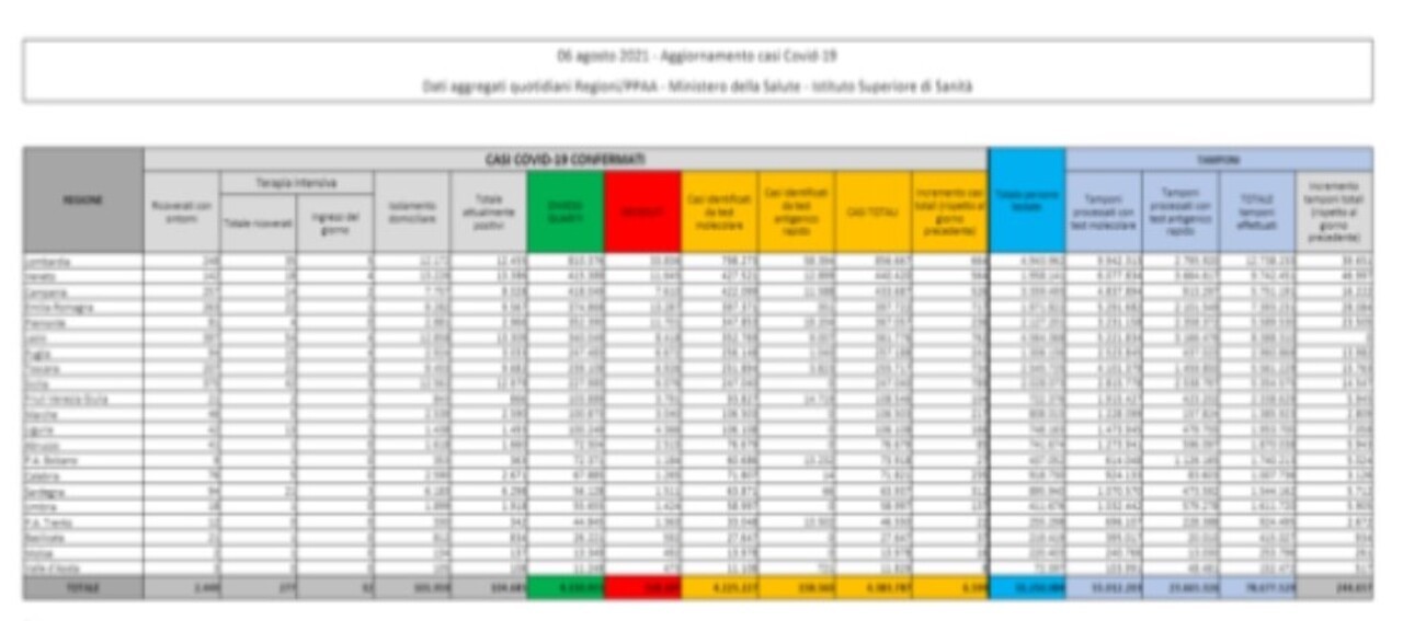 Il Bollettino sul coronavirus del Ministero della Salute di venerdì 6 agosto: sono 6.599 i nuovi casi, 24 i decessi