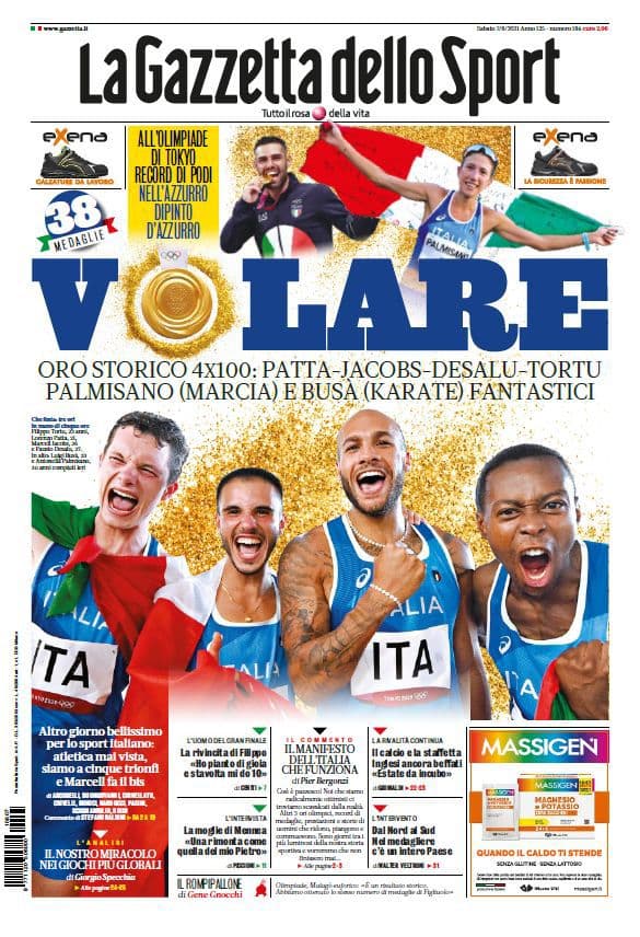I titoli principali sulla prima pagina del quotidiano sportivo, La Gazzetta dello Sport