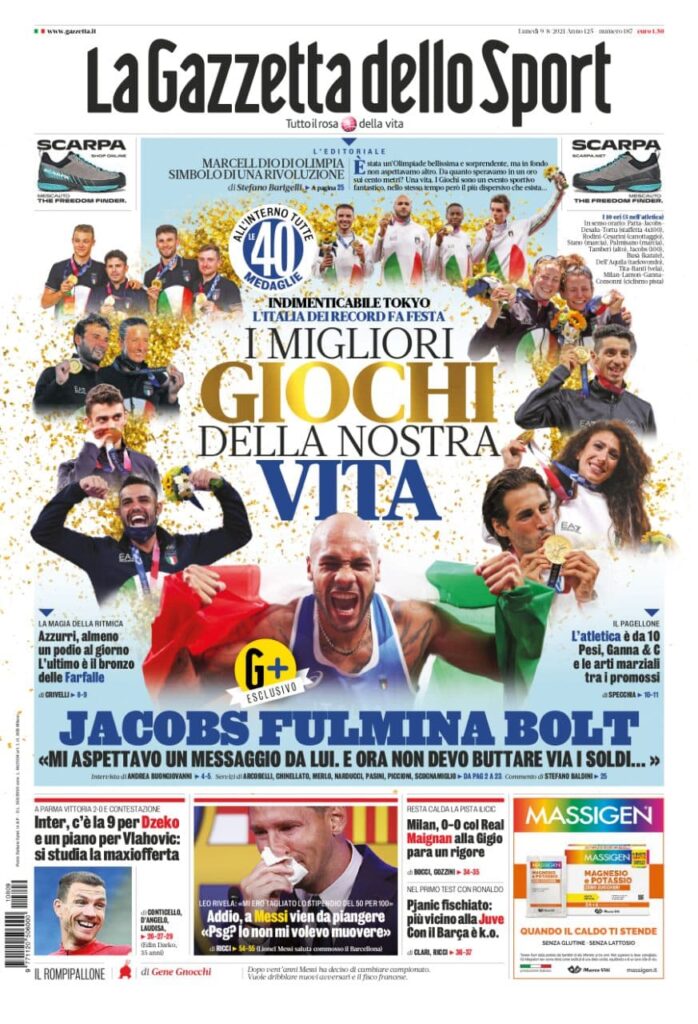 La rassegna stampa di Calciomercato.it vi propone i titoli principali sulla prima pagina di oggi, lunedì 9 agosto 2021, de ‘La Gazzetta dello Sport’:
