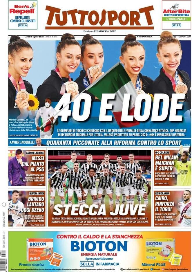 La rassegna stampa di Calciomercato.it vi propone i titoli principali sulla prima pagina di oggi, lunedì 9 agosto 2021, di ‘TuttoSport’: