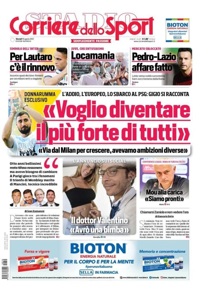 La rassegna stampa di Calciomercato.it vi propone i titoli principali sulla prima pagina di oggi, giovedì 19 agosto 2021, del ‘Corriere dello Sport’: