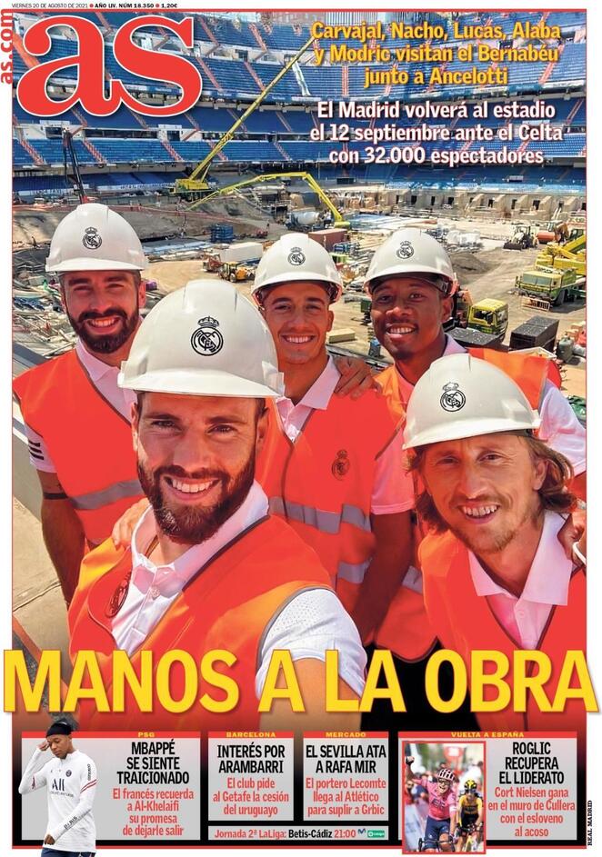 I titoli principali sulla prima pagina del quotidiano sportivo, As