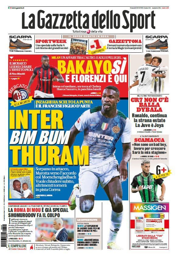 La rassegna stampa di Calciomercato.it vi propone i titoli principali sulla prima pagina di oggi, venerdì 20 agosto 2021, de ‘La Gazzetta dello Sport’: