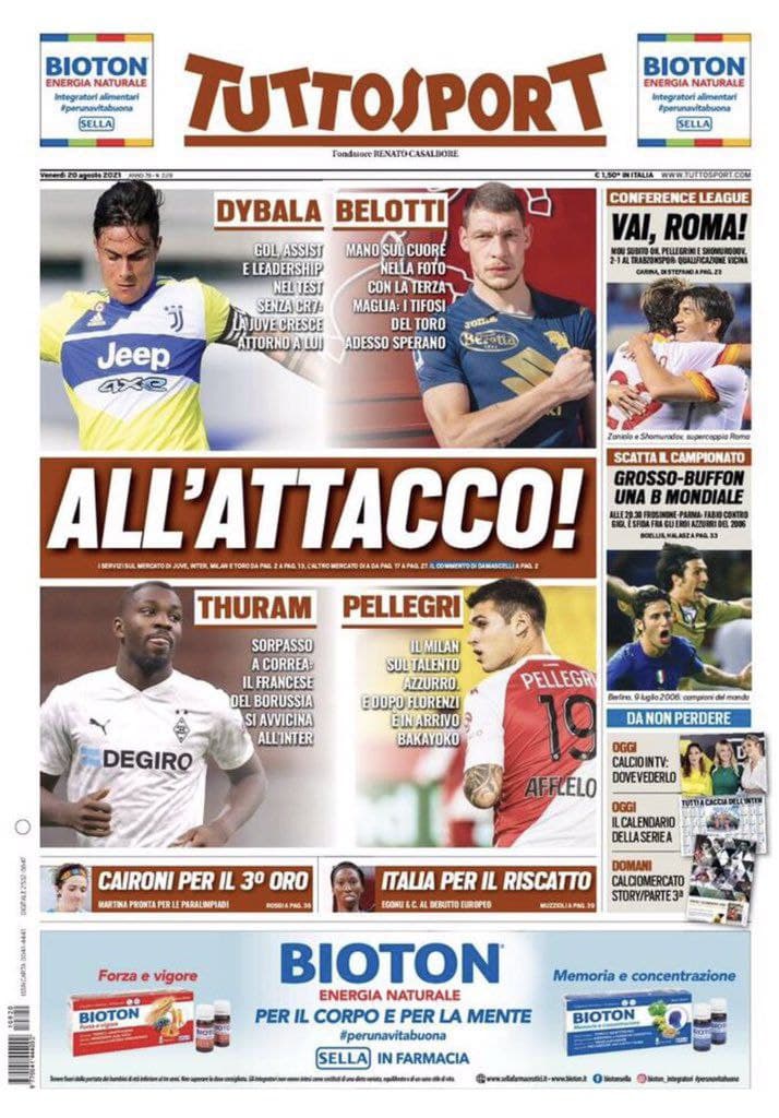 La rassegna stampa di Calciomercato.it vi propone i titoli principali sulla prima pagina di oggi, venerdì 20 agosto 2021, di ‘TuttoSport’: