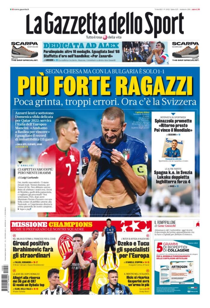 La rassegna stampa di Calciomercato.it vi propone i titoli principali sulla prima pagina di oggi, venerdì 3 settembre 2021, de ‘La Gazzetta dello Sport’: