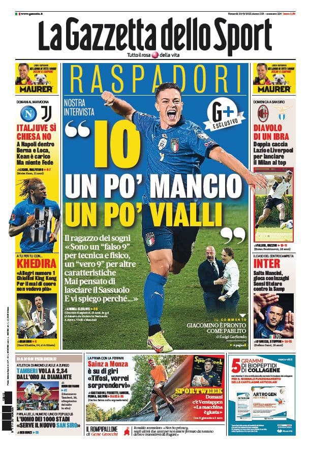 La rassegna stampa di Calciomercato.it vi propone i titoli principali sulla prima pagina di oggi, venerdì 10 settembre 2021, de ‘La Gazzetta dello Sport’: