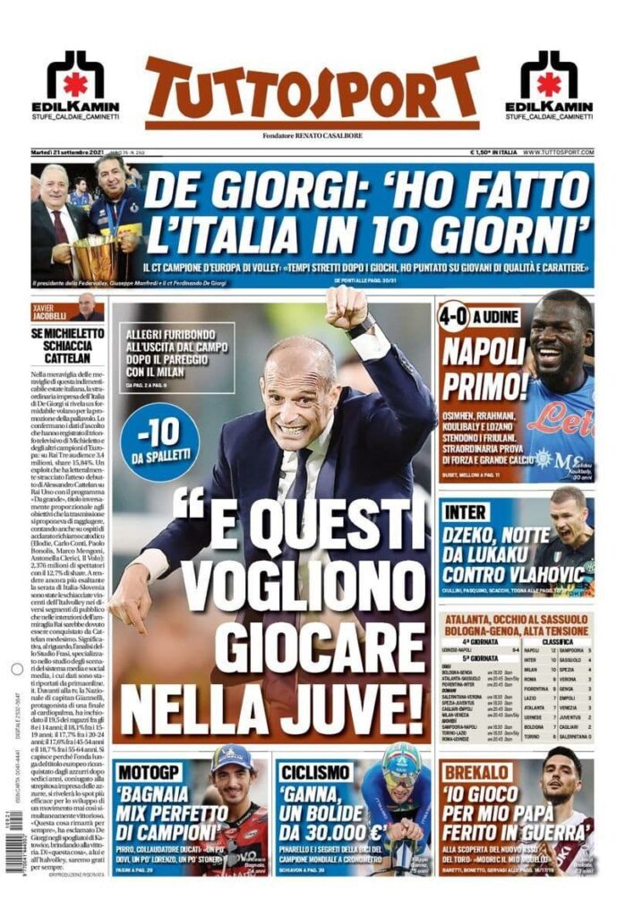 La rassegna stampa di Calciomercato.it vi propone i titoli principali sulla prima pagina di oggi, martedì 21 settembre 2021, di ‘TuttoSport’: