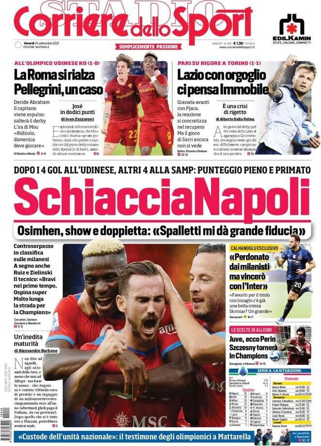 La rassegna stampa di Calciomercato.it vi propone i titoli principali sulla prima pagina di oggi, venerdì 24 settembre 2021, del ‘Corriere dello Sport’: