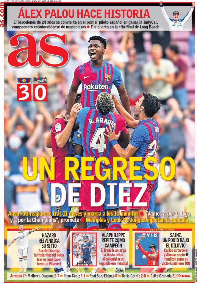 I titoli principali sulla prima pagina del quotidiano sportivo, As
