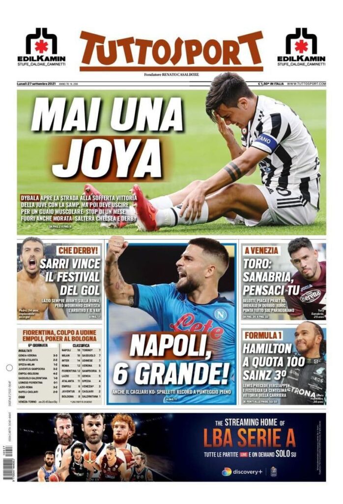 La rassegna stampa di Calciomercato.it vi propone i titoli principali sulla prima pagina di oggi, lunedì 27 settembre 2021, di ‘TuttoSport’:
