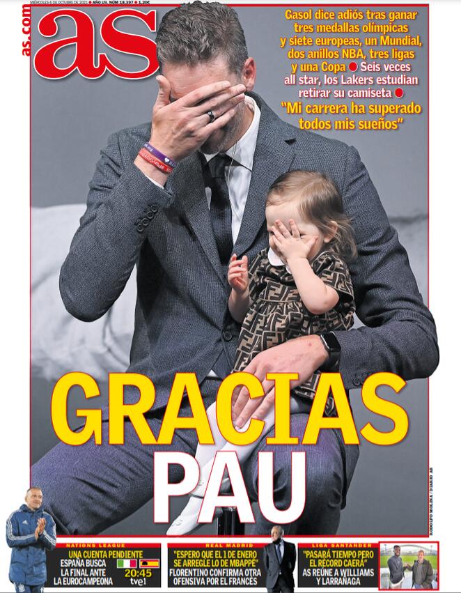I titoli principali sulla prima pagina del quotidiano sportivo, AS
