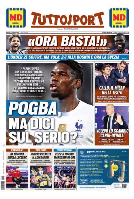 La rassegna stampa di Calciomercato.it vi propone i titoli principali sulla prima pagina di oggi, sabato 9 ottobre 2021, di ‘TuttoSport’: