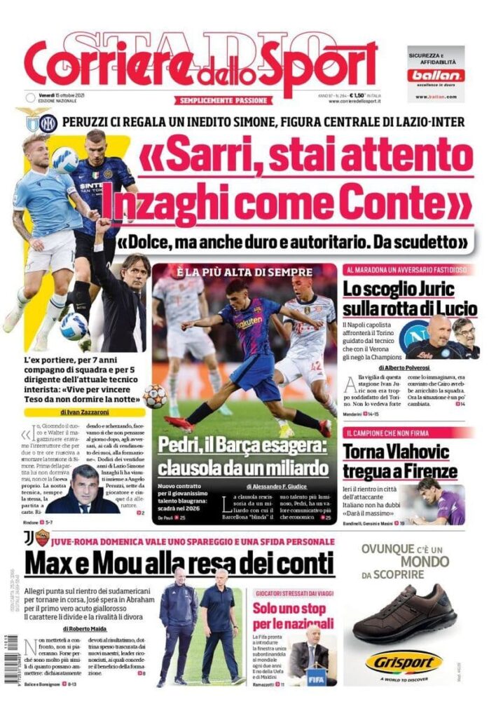 La rassegna stampa di Calciomercato.it vi propone i titoli principali sulla prima pagina di oggi, venerdì 15 ottobre 2021, del ‘Corriere dello Sport’: