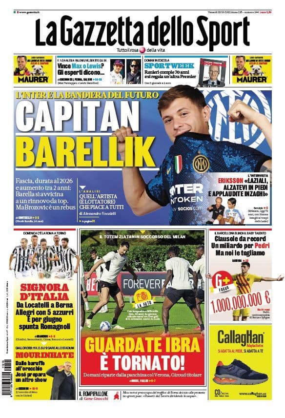 La rassegna stampa di Calciomercato.it vi propone i titoli principali sulla prima pagina di oggi, venerdì 15 ottobre 2021, de ‘La Gazzetta dello Sport’: