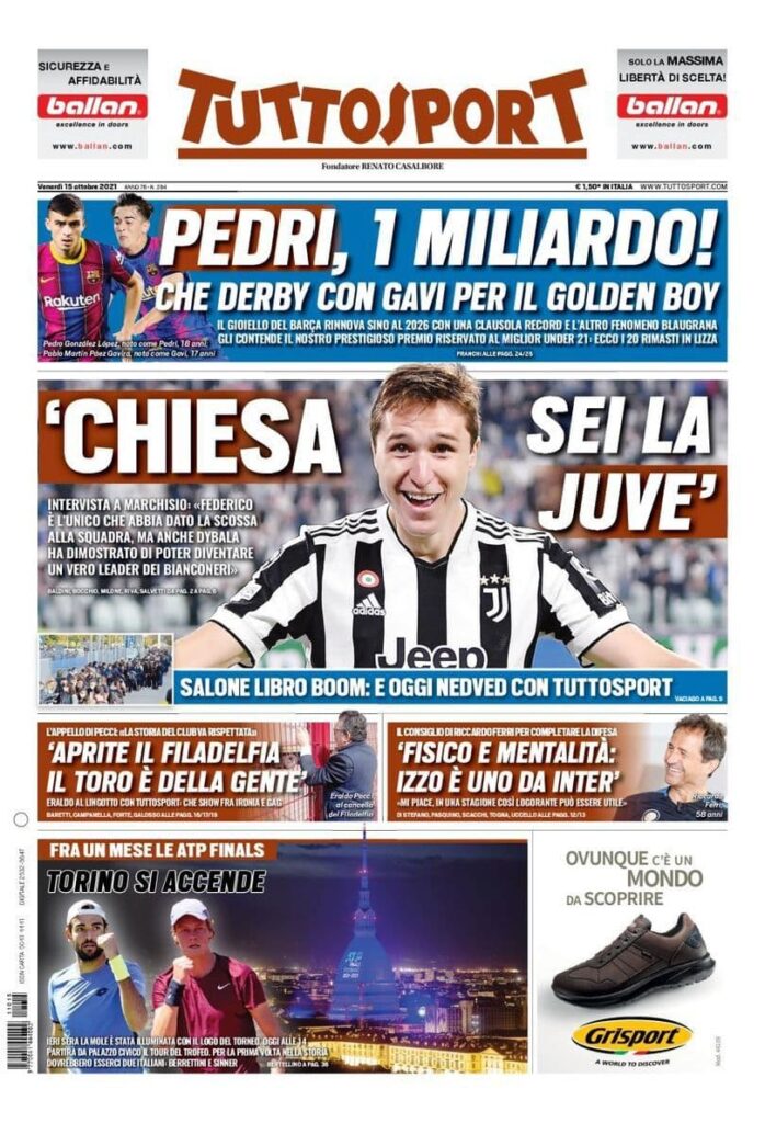 La rassegna stampa di Calciomercato.it vi propone i titoli principali sulla prima pagina di oggi, venerdì 15 ottobre 2021, di ‘TuttoSport’:
