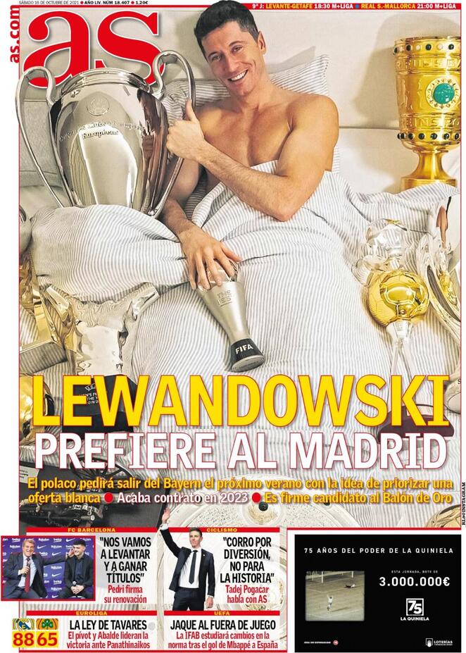 La rassegna stampa di Calciomercato.it vi propone i titoli principali sulla prima pagina di oggi, sabato 16 ottobre 2021, di ‘AS’: