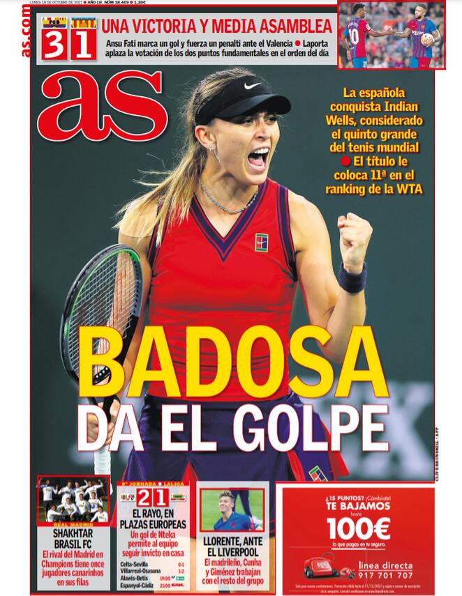 I titoli principali sulla prima pagina del quotidiano sportivo, As