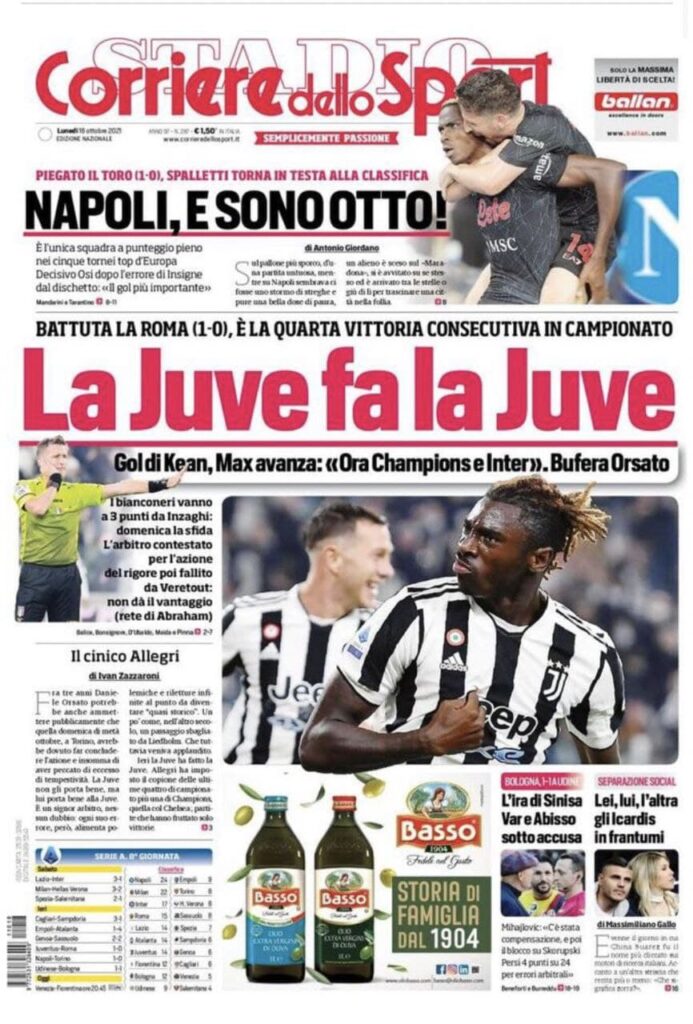 La rassegna stampa di Calciomercato.it vi propone i titoli principali sulla prima pagina di oggi, lunedì 18 ottobre 2021, del ‘Corriere dello Sport’: