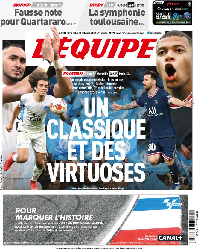 La rassegna stampa di Calciomercato.it vi propone i titoli principali sulla prima pagina di oggi, domenica 24 ottobre 2021, de ‘L’Equipe’: