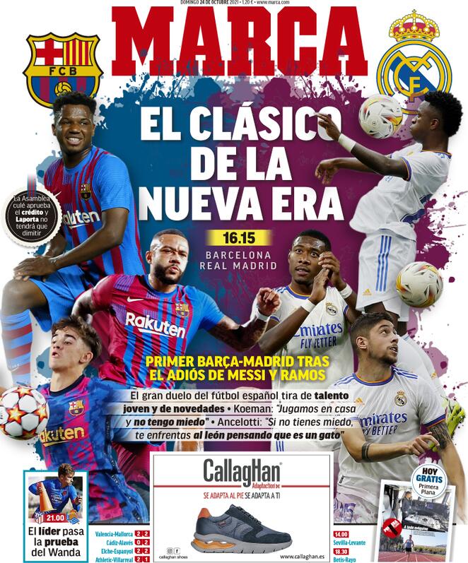I titoli principali sulla prima pagina del quotidiano sportivo, Marca