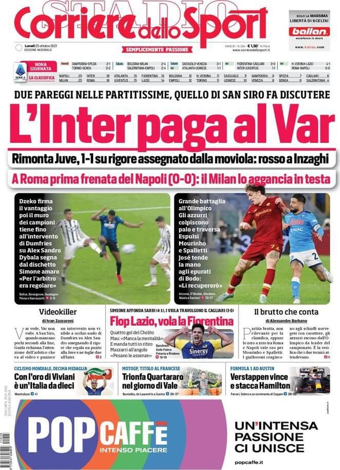 La rassegna stampa di Calciomercato.it vi propone i titoli principali sulla prima pagina di oggi, lunedì 25 ottobre 2021, del ‘Corriere dello Sport’: