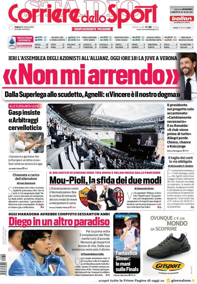 La rassegna stampa di Calciomercato.it vi propone i titoli principali sulla prima pagina di oggi, sabato 30 ottobre 2021, del ‘Corriere dello Sport’: