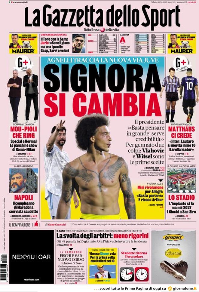 La rassegna stampa di Calciomercato.it vi propone i titoli principali sulla prima pagina di oggi, sabato 30 ottobre 2021, de ‘La Gazzetta dello Sport’: