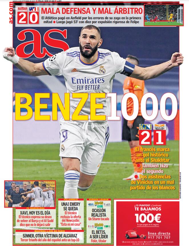I titoli principali sulla prima pagina del quotidiano sportivo, As