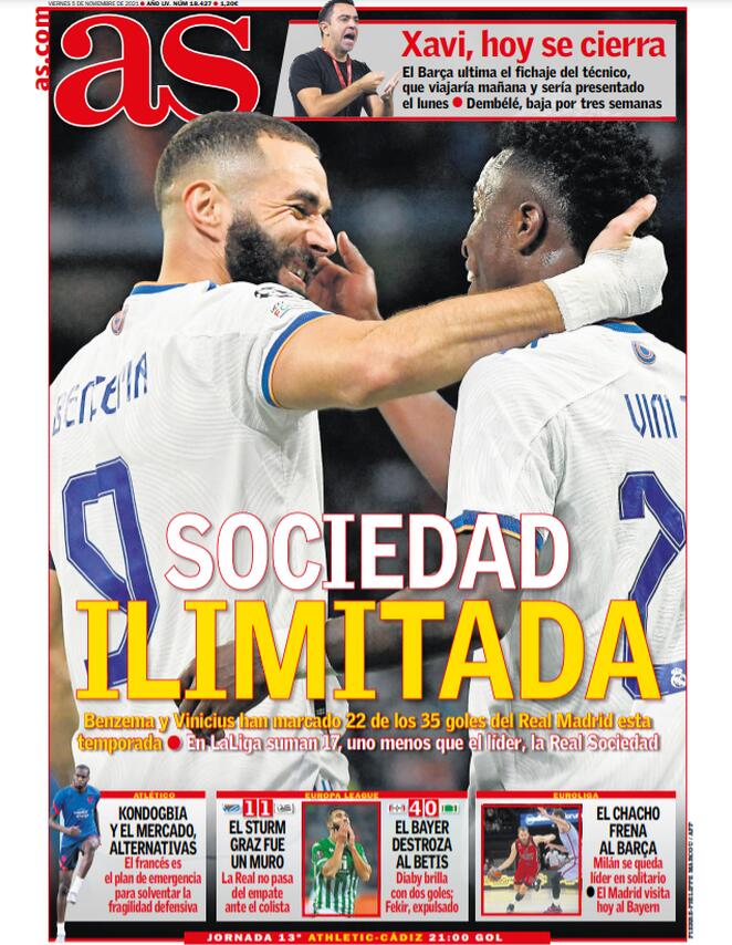 I titoli principali sulla prima pagina del quotidiano sportivo, As