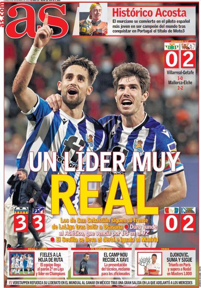 I titoli principali sulla prima pagina del quotidiano sportivo, As