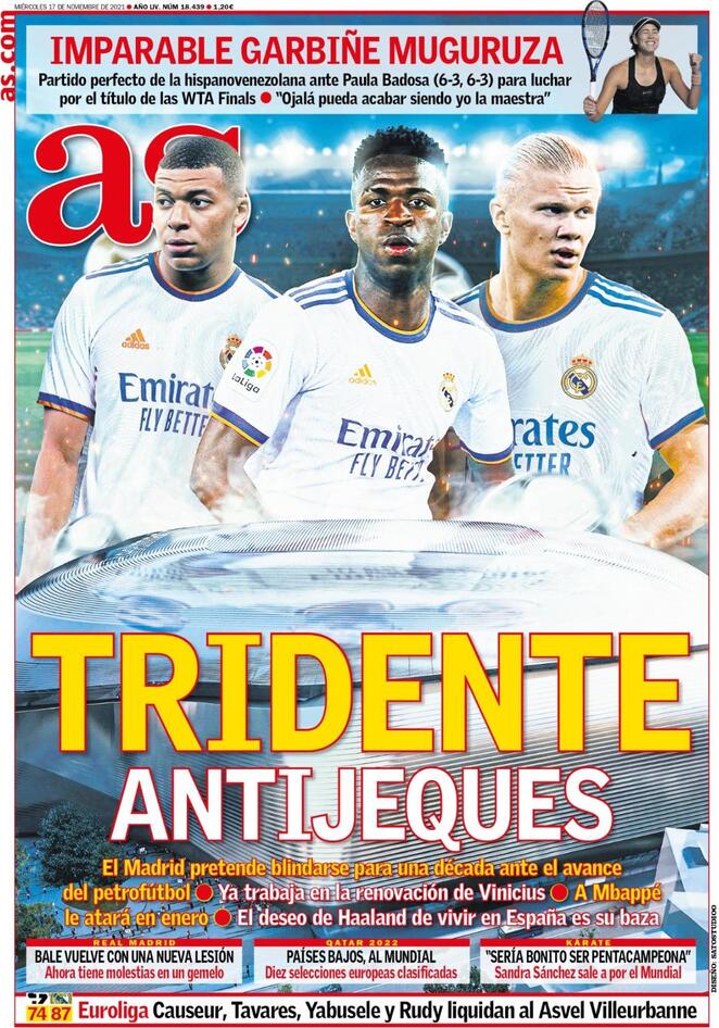 I titoli principali sulla prima pagina del quotidiano sportivo, As