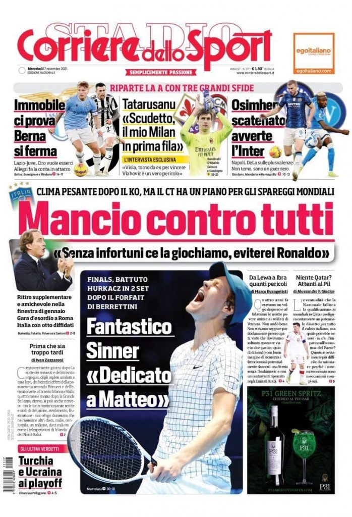 La rassegna stampa di Calciomercato.it vi propone i titoli principali sulla prima pagina di oggi, mercoledì 17 novembre 2021, del ‘Corriere dello Sport’: