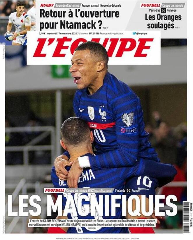 La rassegna stampa di Calciomercato.it vi propone i titoli principali sulla prima pagina di oggi, mercoledì 17 novembre 2021, di ‘L’Equipe’: