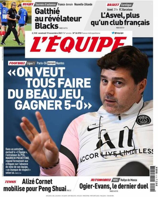 La rassegna stampa di Calciomercato.it vi propone i titoli principali sulla prima pagina di oggi, venerdì 19 novembre 2021, de ‘L’Equipe’: