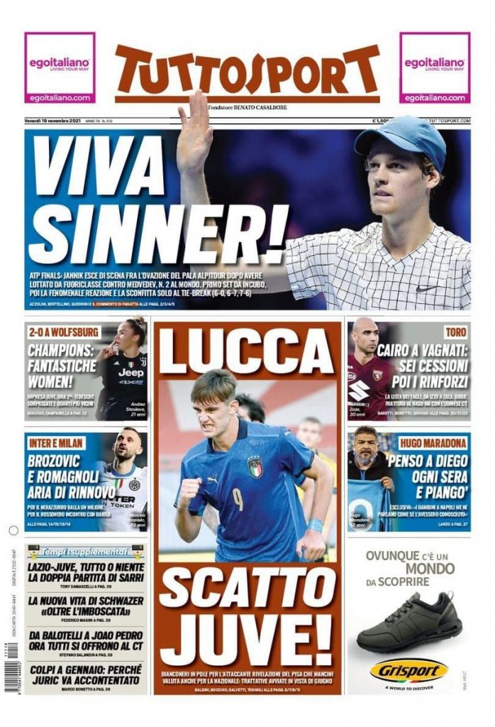 La rassegna stampa di Calciomercato.it vi propone i titoli principali sulla prima pagina di oggi, venerdì 19 novembre 2021, de ‘TuttoSport’: