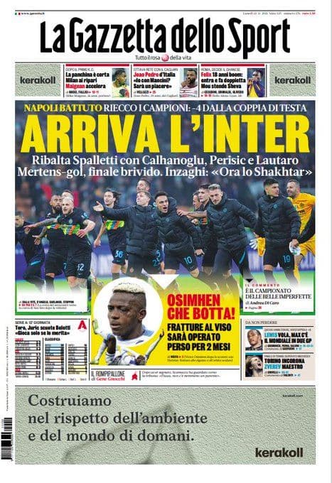 La rassegna stampa di Calciomercato.it vi propone i titoli principali sulla prima pagina di oggi, lunedì 22 novembre 2021, de ‘La Gazzetta dello Sport’: