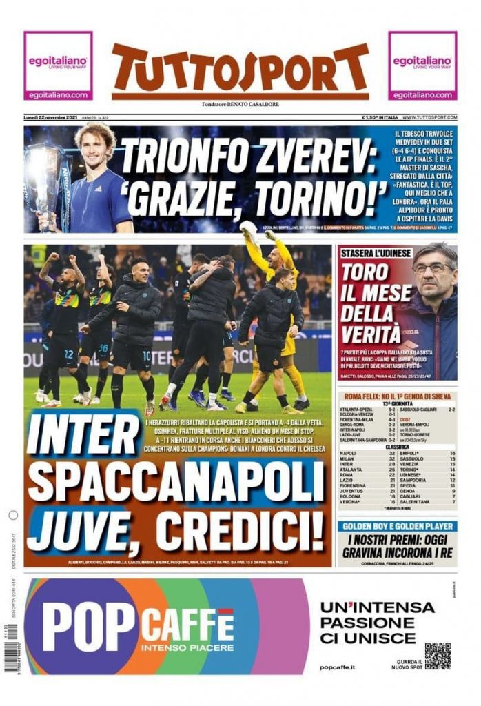 La rassegna stampa di Calciomercato.it vi propone i titoli principali sulla prima pagina di oggi, lunedì 22 novembre 2021, di ‘TuttoSport’: