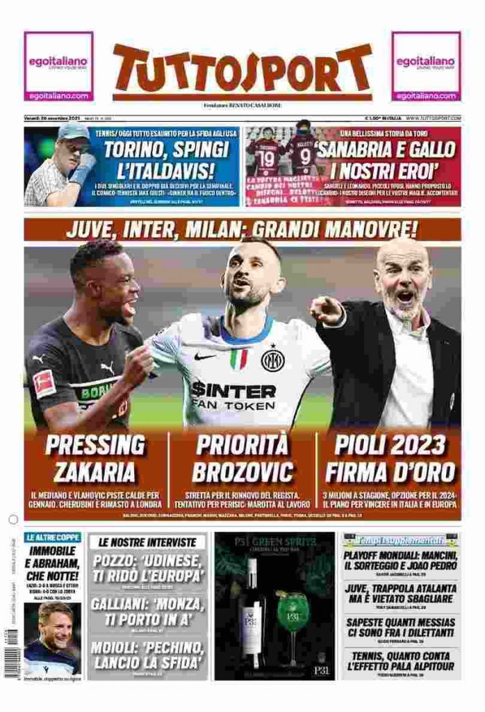 La rassegna stampa di Calciomercato.it vi propone i titoli principali sulla prima pagina di oggi, venerdì 26 novembre 2021, di ‘TuttoSport’: