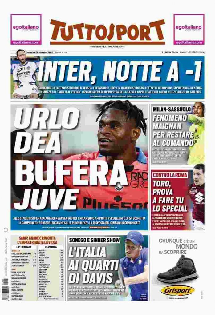 La rassegna stampa di Calciomercato.it vi propone i titoli principali sulla prima pagina di oggi, domenica 28 novembre 2021, di ‘TuttoSport’: