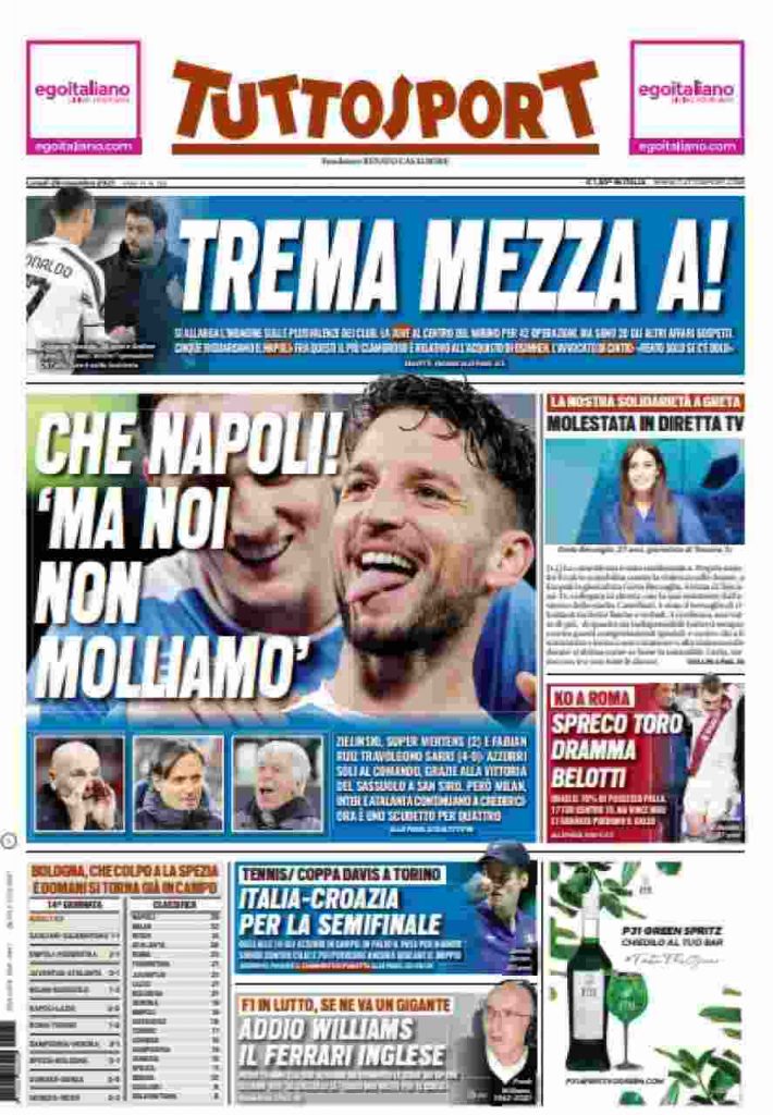 I titoli principali sulla prima pagina del quotidiano sportivo, TuttoSport