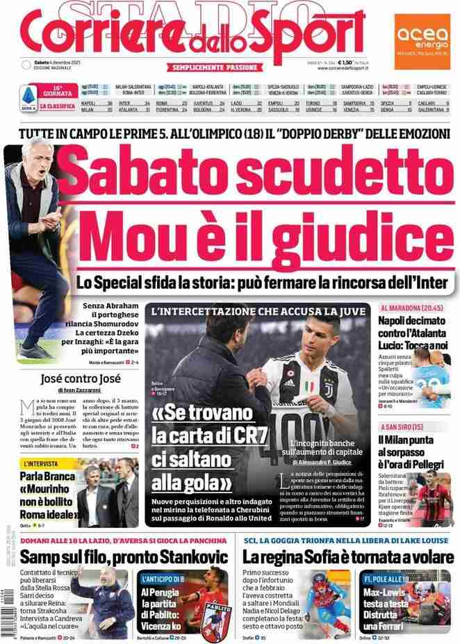 La rassegna stampa di Calciomercato.it vi propone i titoli principali sulla prima pagina di oggi, sabato 4 dicembre 2021, del ‘Corriere dello Sport’.