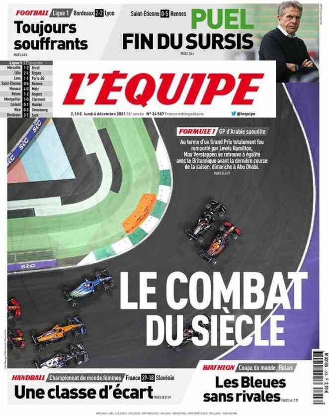 I titoli principali sulla prima pagina del quotidiano sportivo, L’Equipe